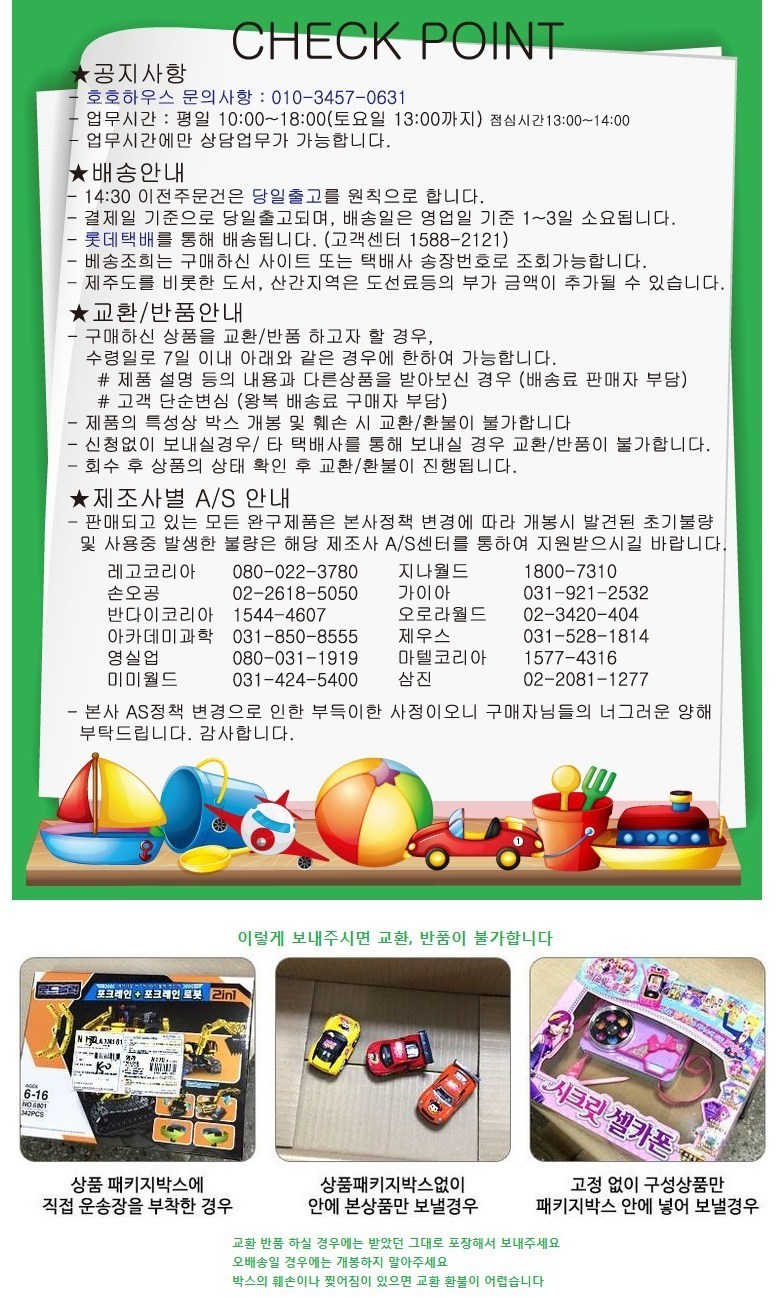 - ㆍ교환/반품에 관한 일반적인 사항은 판매자가 제시사항보다 관계법령이 우선합니다.